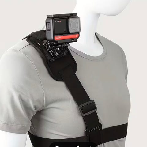 Ryggsekk kamera feste. Action camera mount. GoPro 13, Insta360 X5. DJI Osmo