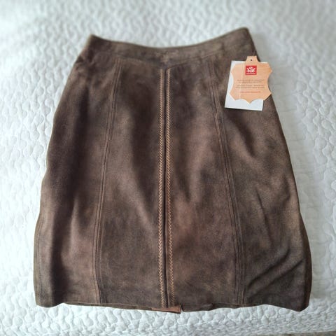 Burgunder miniskjørt fra Raey. Skjørtet er laget av 100% mykt grained leather, med svart fòr i cupro. Nydelig kvalitet! Det har lommer foran, lukkes med hempe og glidelås i front. Sitter på hoftene, kroppsnært snitt. Det har et veldig cleaner utseende som er enkelt å kle opp eller ned! Laget i UK.