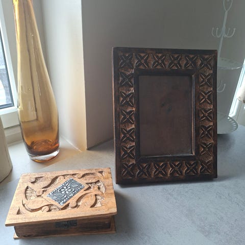 4stk treskrin passer oppe i hverandre det største måler 22X17cm og det minste måler 10X6cm kjøper betaler eventuell frakt