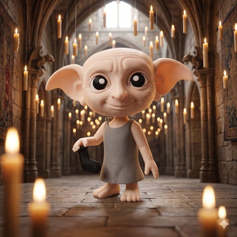 Funko Pop av Dobby, den frie husnissen med sokken sin.