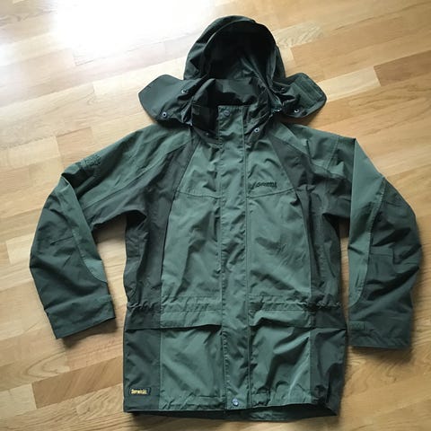 Bergans Dermizax jakke i olivengrønn farge for herre. Jakken har hette, flere lommer med klaff og glidelås, samt justerbare snorer i midje og hette. Materialet er slitesterkt og egnet for utendørs bruk.