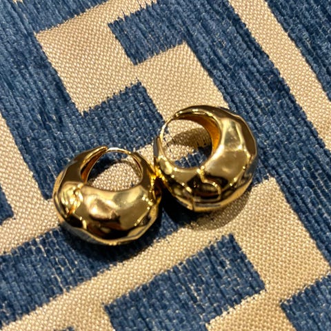 Gullfargede øreringer med anheng fra Pilgrim. Aldri brukt, nypris 249kr.