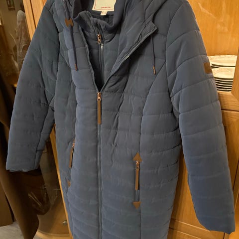 Mørk blå vattert jakke med hette og lommer str xl( 46/ 48 )