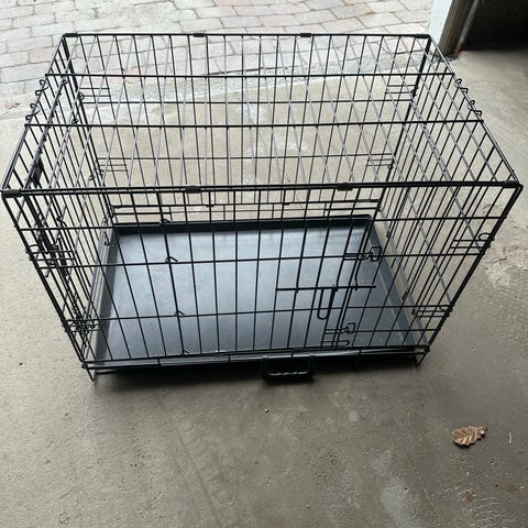 Buret er pent brukt. Men er kommet litt rust på noen av hengslene. Skrå bur. Lett å slå sammen