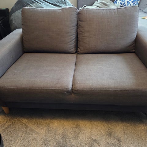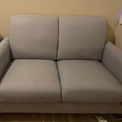 Sofa Egense 2-seter, mørk grå stoff fra Jysk selges som nesten ny. Hatt den siden august 2025, men er kun brukt i cirka 2 mnd (kjøpte den ny). Selges pga. overgang til større sofa da denne sofaen ble noe for liten. Selges ferdig montert.