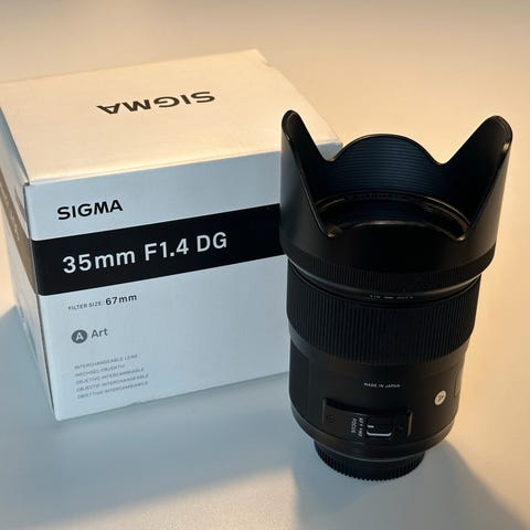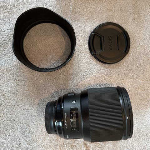 Sigma 85mm f/1.4 DG HSM objektiv for Nikon-kamera. Objektivet har en brennvidde på 85mm og en maksimal blenderåpning på f/1.4. Designet for å gi høy bildekvalitet med hurtig autofokus ved hjelp av HSM (Hyper Sonic Motor). Passer til bruk med kompatible kameraer.