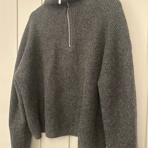 H&M høyhalset genser for kvinner i størrelse M. Genseren er grå og laget av materiale som fremgår av bildene. Passer for bruk som overdel i kaldere vær. Ull og kashmir