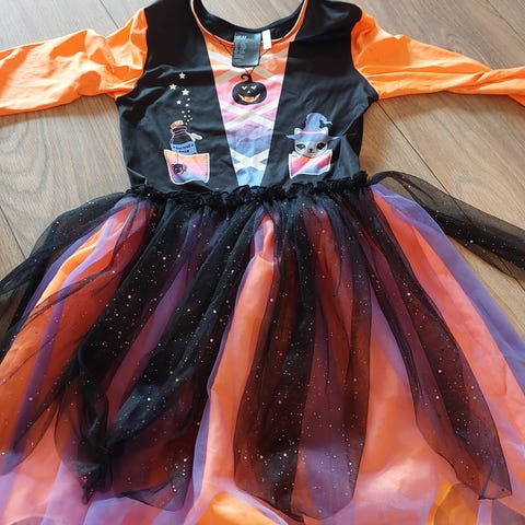 Selger fine Karneval/halloween kostymen str 134-140. Hårbøyle tyllslør og krage Svart. Alt
