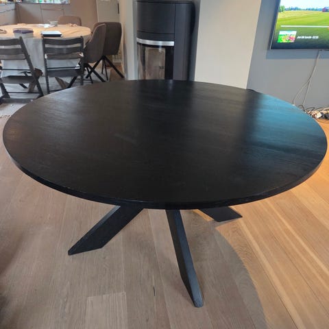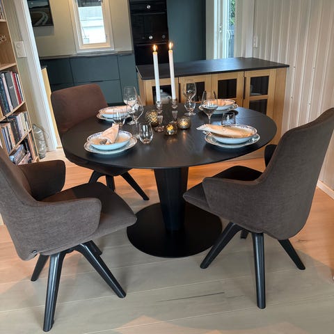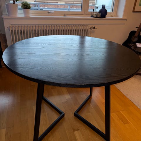 Noen bruksmerker/slitasje. Ikke mulig med innleggsplater. Plass til 6-8 stk rundt bordet. Kommer an på hvilke stoler man har