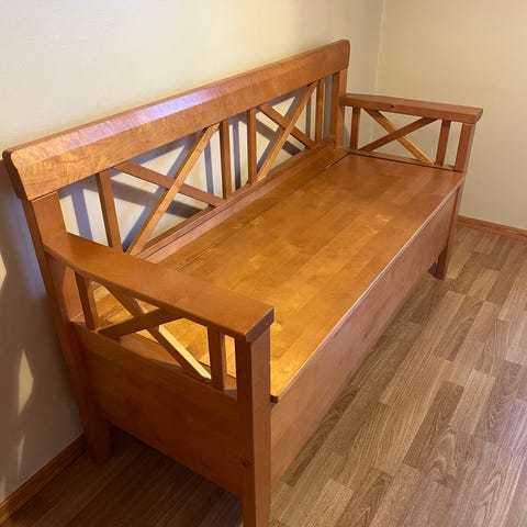 Gammel slagbenk selges. Benken er i tre deler, den er tung, men kan enkelt fraktes.