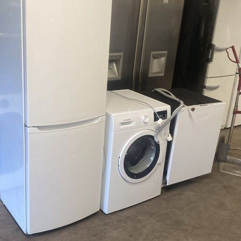 Vaskemaskinen og kjøleskapet er klar til å leveres eller hentes på vårt lager.