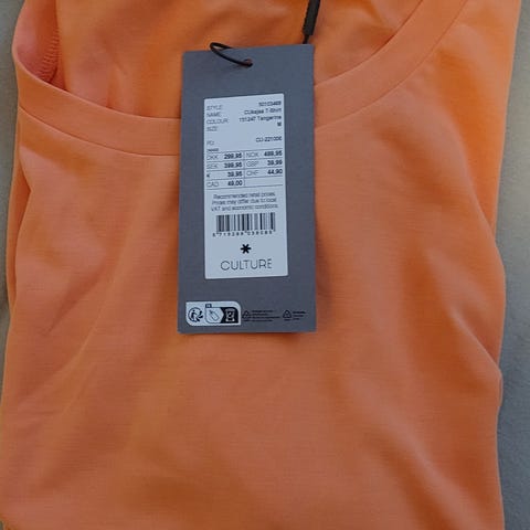 Strikket T-skjorte som ser ut som nye. Den farge passer ikke til meg . Brukte to ganger på jobben og vasket 😊 str M