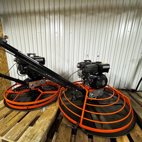 2 stk Tremix "Betong helikopter" med elektrisk motor 1 230 3fas og en 400v 3fas , utstyrt med hjul for enkel håndtering. Maskinen har en robust konstruksjon med metallramme og et langt strømkabel for fleksibel bruk. Egnet for sliping av betongflater i bygge- og renoveringsprosjekter.