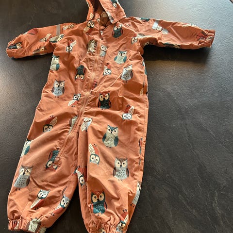 Reima parkdress i blå farge, mønstret. Størrelse 86. Godt brukt og litt slitasje spesielt på knær, men ingen hull og masse bruk igjen.