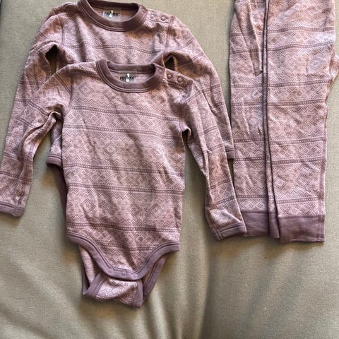 Pent brukt. Noe misfarging på de lyseste plaggene og litt nupper men ingen hull i noen av plaggene