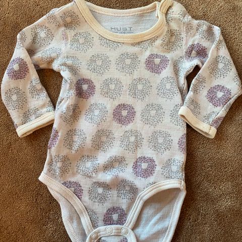 Deilig ullbody fra Tom og Trine. Str 60 (str 56/62). Lys rosa med hvitt mønster.