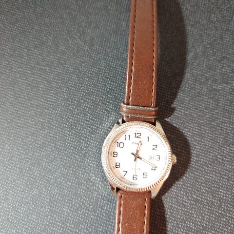 Gammel lorus klokke. Til dame. Viserne lyser i mørke. Skal tåle vann.