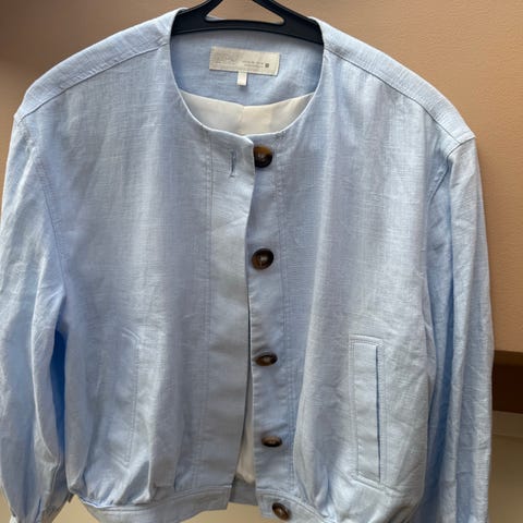 Ny Bomberjakke i linblanding i str. xs. Lappen har tatt av. Men aldri brukt. Selges for 100kr. Prisen er ferdig prutet.