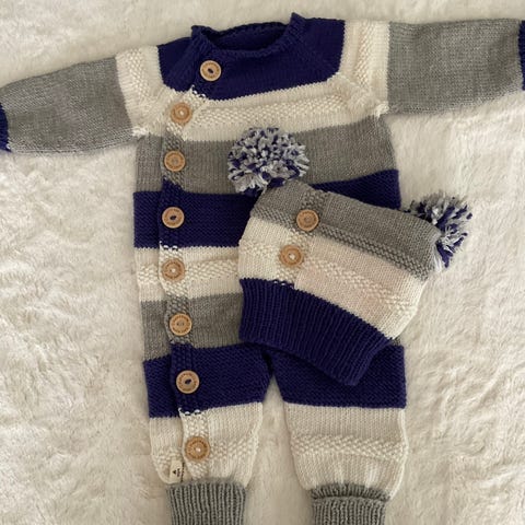 Selger en hjemmestrikket baby dress i 3-6mnd