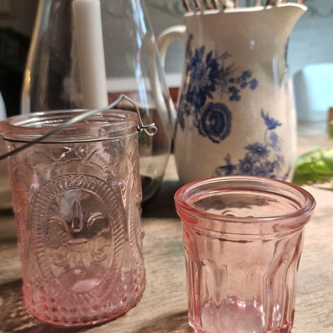 2 portugisiske, håndmalte lysestaker i hvit og blå keramikk, laget av Vestal.