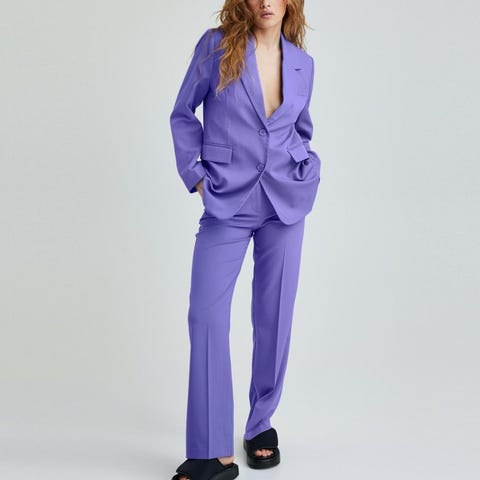 YAS YASAZAL dress med blazer og bukse i rosa farge, størrelse Small. Blazeren har et klassisk snitt.