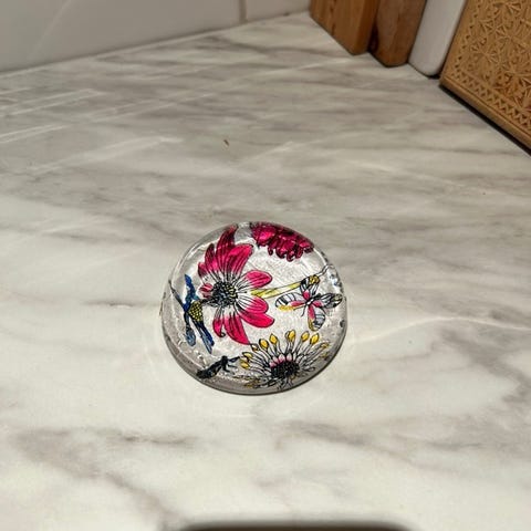 Høyde ca 33,5 cm , diameter topp 33,5 cm, diameter bunn 14 cm, ca-mål.