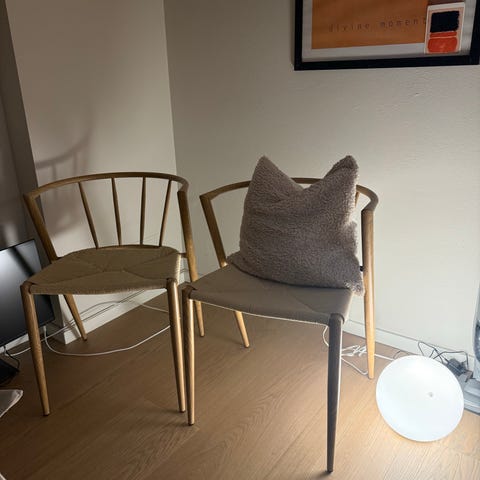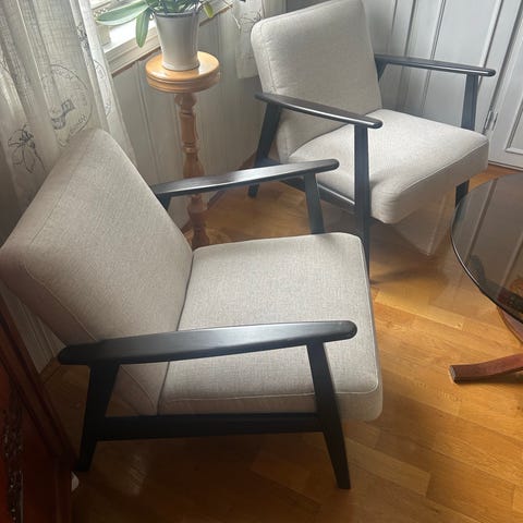 Hatt stolene i 4 år. Stort for det meste til pynt. Ingen skader eller merker. Renses før de blir hentet. Veldig gode å sitte i. Ved interesse send sms på 98602635