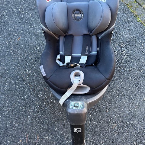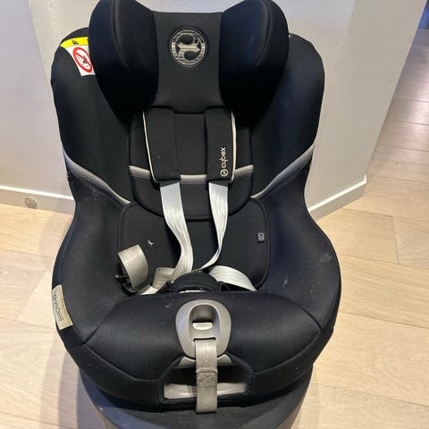 CYBEX Sirona Z i-Size avtagbart bilsete, med isofix base, til baby med kapasitet opptil 13 kg. Setet er svart og pent brukt til ett barn. Utstyrt med justerbare stropper og beskyttende sideputer for økt sikkerhet. Kan roteres. Kan settes på ulike vogner med adapter (medfølger ikke).