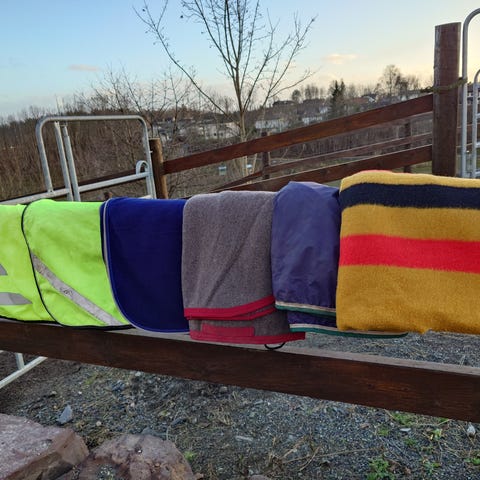 Fôret dekken i grå farge med sort kant. Teppe har glidelås og stropper for festing. Innside er foret med hvit, myk og varm fleece. Passer til bruk som beskyttelse og varme for hund. Refleksen lyser opp! Sydd opp til å passe min cockapoo på 10kg. Bruker str 40-45 i andre dekken.