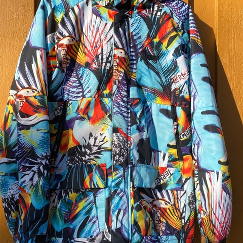 Høstjakke fra Name-it. Str 146. Kule farge og mønster. Pent brukt. Fargene er kanskje enda sterkere, enn hva som kommer fram på bildene.