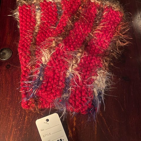 Pulsvarmere med perler i fargene rødt og rosa. Ikke brukt.