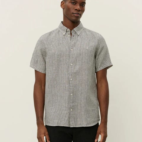 Kortermet, sand og hvit stripete skjorte fra merket Solid.