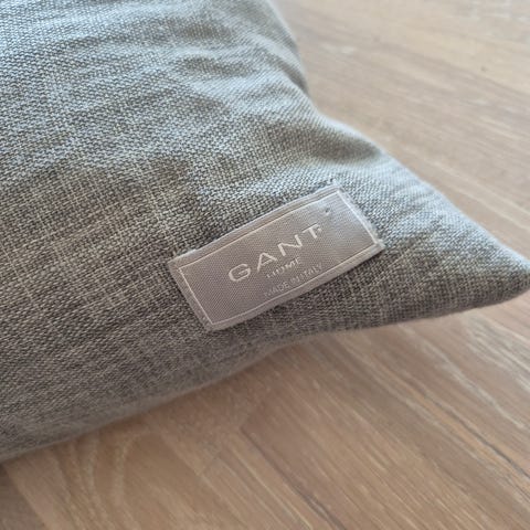 1. Stor, ensfarget lilla lin pute. Glidelås i bunn. Dun innvendig.