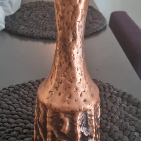 Liten spesiell kobber vase, 25 cm. 150 kr