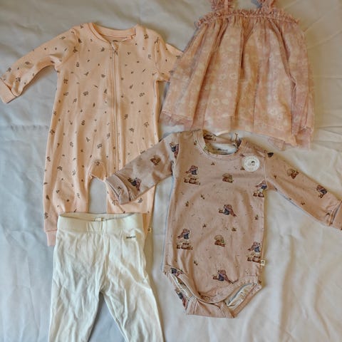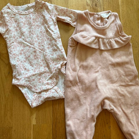 Fint sett med body og bukse + kjole og tights (har lite hull) se bilde.