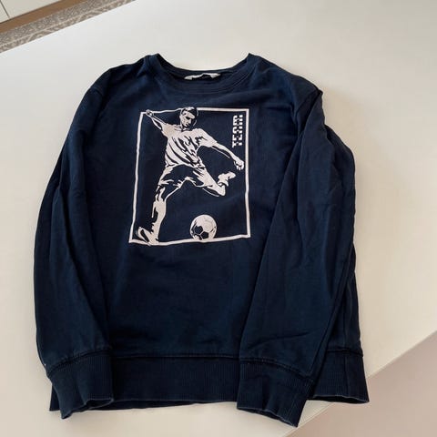 Flerfarget unisex barnegenser i størrelse 146/152. Genseren har hette og et mønster som inkluderer kartdesign i oransje og hvitt. Egnet for barn, laget for komfort og hverdagsbruk.