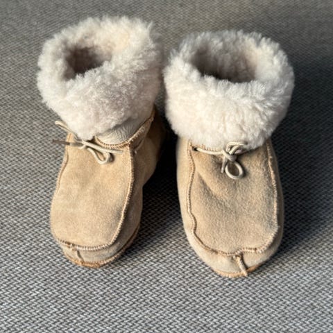 Myke og gode tøfler i størrelse 26. De er ganske små, har derfor skrevet str 25. Har pga det også ikke rukket å bli brukt så mye.