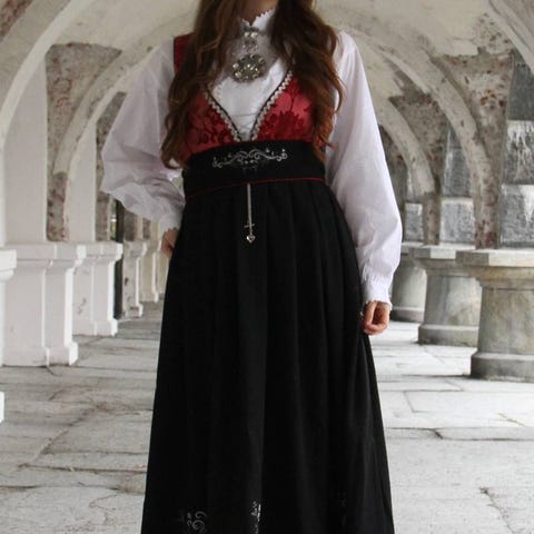 Helt ny, bare prøvet, festdrakt fra Sølje. Følger med underskjørt, skjorte og pose. Str.xl
