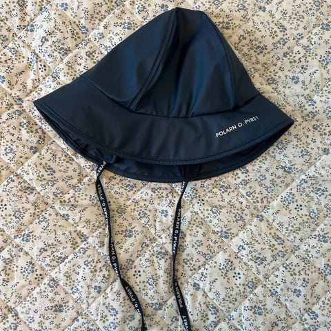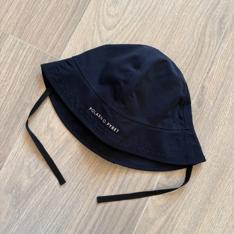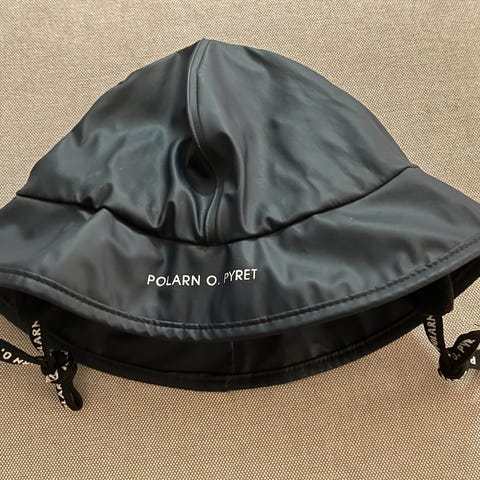Selger en Polarn O. Pyret regnhatt i navy/blå, størrelse 54 (ca. 6–9 år).