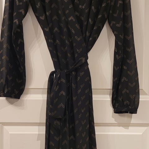 Lite og pent brukt bukse i bomull, viskose og silke. Veldig behagelig på. Vide ben, lett utsvingt. Strikk i livet.