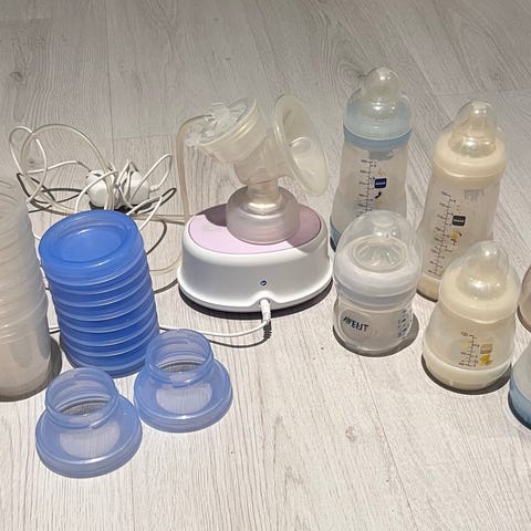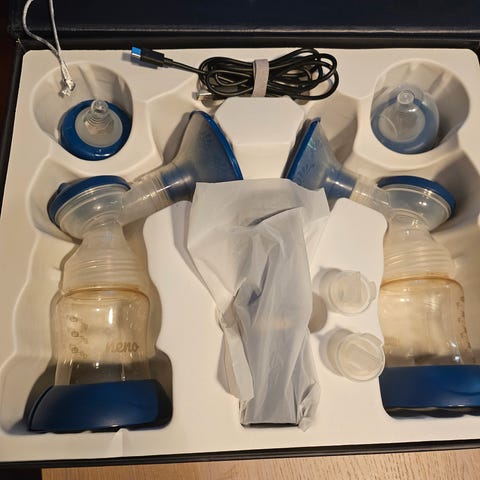 Jeg selger en brukt brystpumpe av høy kvalitet. Den er 100 % pålitelig. Prisen inkluderer også melkeposer og ammeinnlegg.