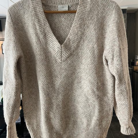 Ellos genser i brun farge, størrelse S for damer. Laget av en blanding av polyamid, ull og akryl som gir varme og komfort. Genseren har en enkel design med rund hals og langermet passform.