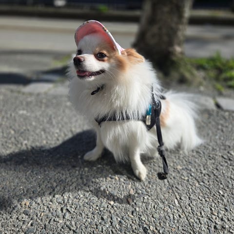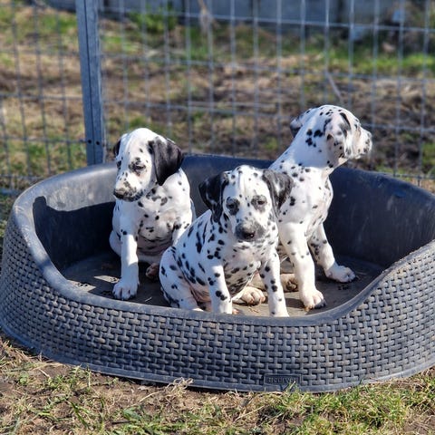 To hannhunder er solgt. Det er den til venstre og til høyre i korga.