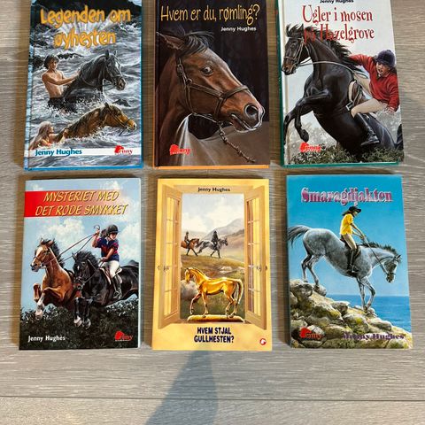 Flere bøker om hester med ulike temaer og innhold. Bøkene dekker emner som hestepleie, ridning og hestehistorier. Passer for hesteinteresserte i alle aldre.