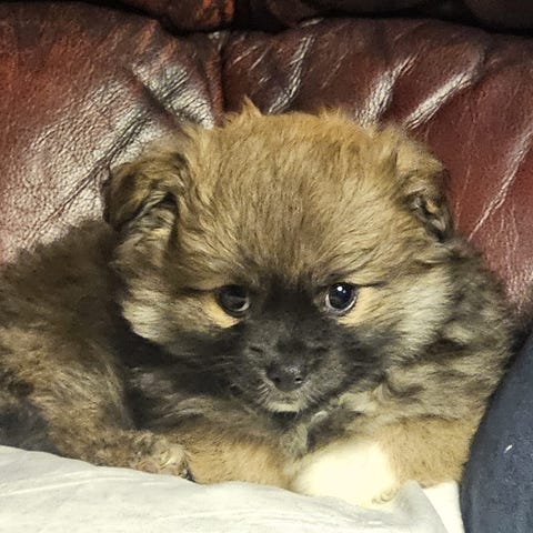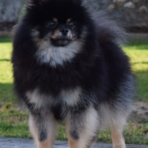 Mankehøyden er 35cm +/- 5cm. Det er typisk spitz med stående ører og krøll på halen.