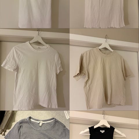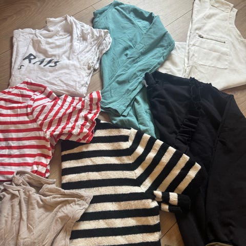Mest er basic, svart hvit. Genser, t-skjort, magetop, etc.