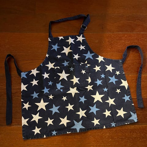Selger to Ikea-sett med barneforkle og tilhørende kokkehatt for 60 kr. per sett.