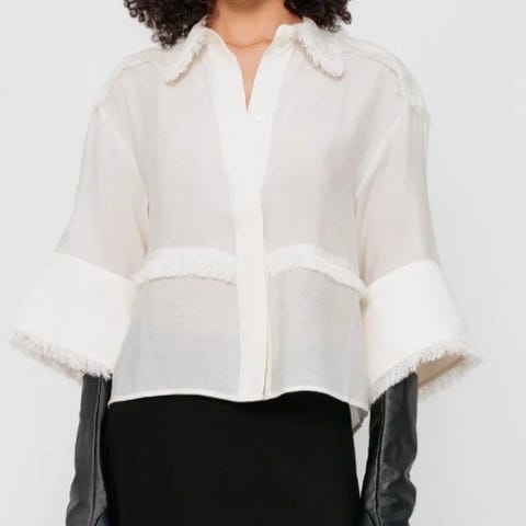 DAY Birger et Mikkelsen bluse i hvit/elfenben farge, størrelse 40. Blusen har knappelukking foran og lange ermer med mansjetter. Skjorten er laget av 100% nydelig viskose. Ble dessverre litt trang og selges videre. Ny pris 2600 kr. Merkelapp fortsatt på.