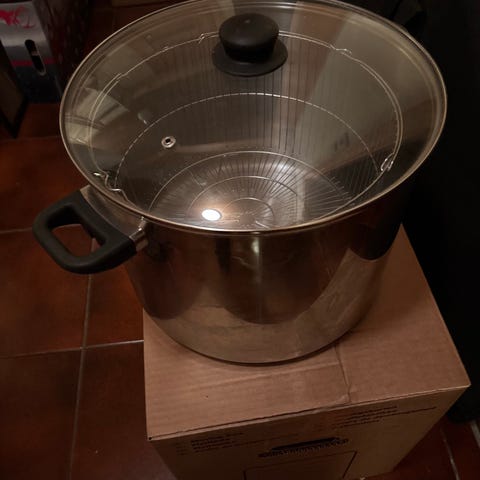 Paderno kjele laget av rustfritt stål med to håndtak og lokk. Egnet for generell matlaging og oppvarming av større mengder væske eller mat. den har et solid design med påsatt merke og preget logo.