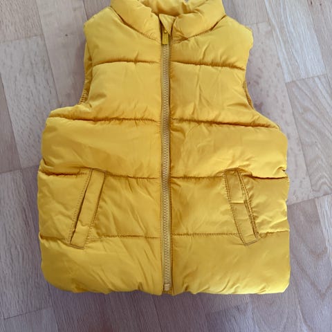 Zara barnevest i størrelse 92, gul farge. Passer for både gutter og jenter. Vesten har knappelukking foran og er laget i et lett materiale som gir varme uten å være tung.
